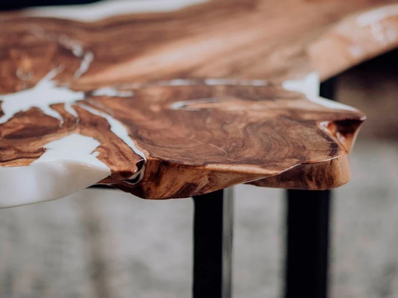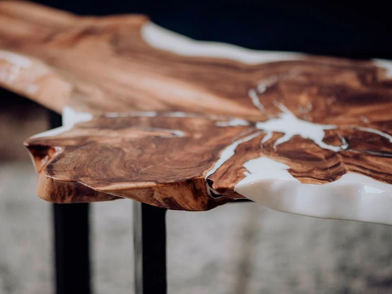 Этот журнальный стол из цельного спила карагача с декоративными вставками из эпоксидной смолы станет центральным элементом любого интерьера. Каждое изделие обладает неповторимой текстурой и уникальным природным рисунком, созданным самой природой. Использование экологически чистой древесины гарантирует безопасность, а профессиональная обработка на производстве обеспечивает долговечность и безупречный внешний вид. Монолитная конструкция и природная прочность массива дерева делают эту мебель не только эстетичной, но и надежной в эксплуатации.